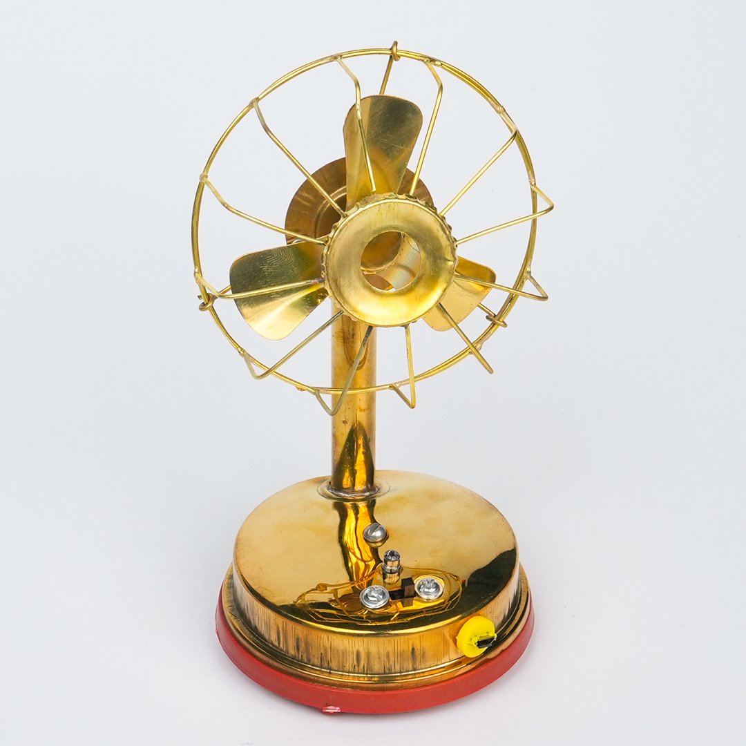 This toy table fan is made with high-quality brass. It's an ideal choice for hours of entertainment and guaranteed to last. Enjoy the classic fan design and iconic look.