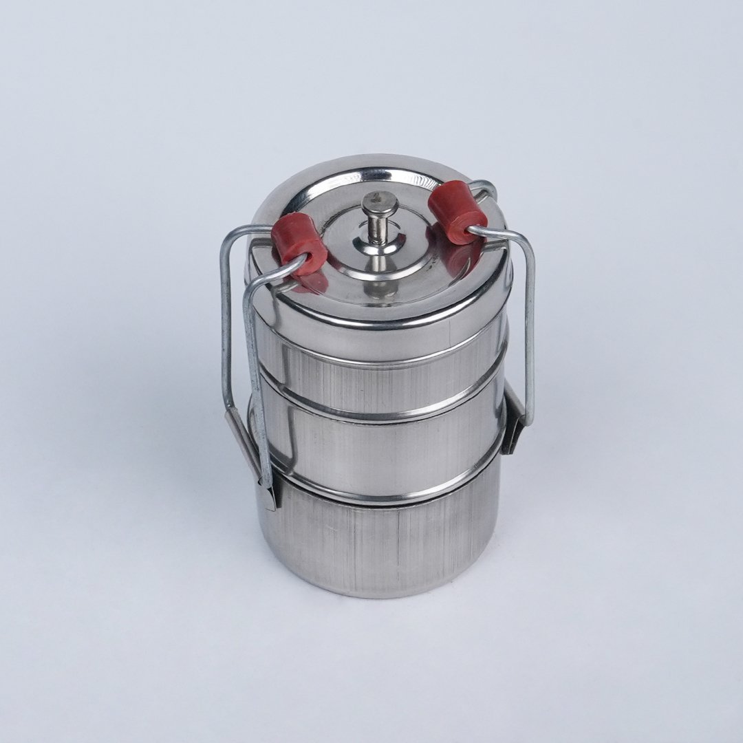 Get your little one cooking with the Button Carrier! This miniature stainless steel tiffin carrier is perfect for their kitchen pretend play. With its compact size and adorable button design, your child will have a blast cooking up delicious make-believe meals.