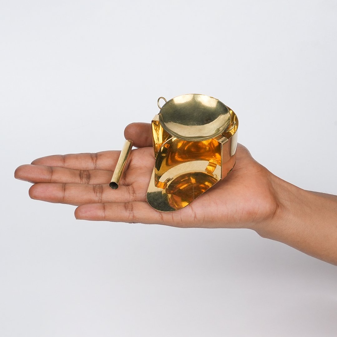 This miniature brass chula set is perfect for any child's toy kitchen. Crafted with precision and attention to detail, it provides a realistic and educational cooking experience. Made from durable brass, it is built to last and can withstand hours of playtime.