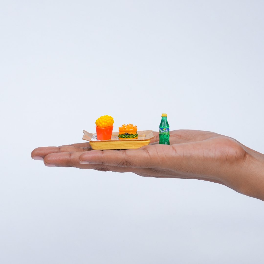 Indulge in realistic dollhouse dining with our Miniature Hamburger and Fries set. Perfectly sized for your doll's kitchen, these tiny replicas will bring playtime meals to life. With intricate details and charming design, your child will enjoy hours of imaginative play.