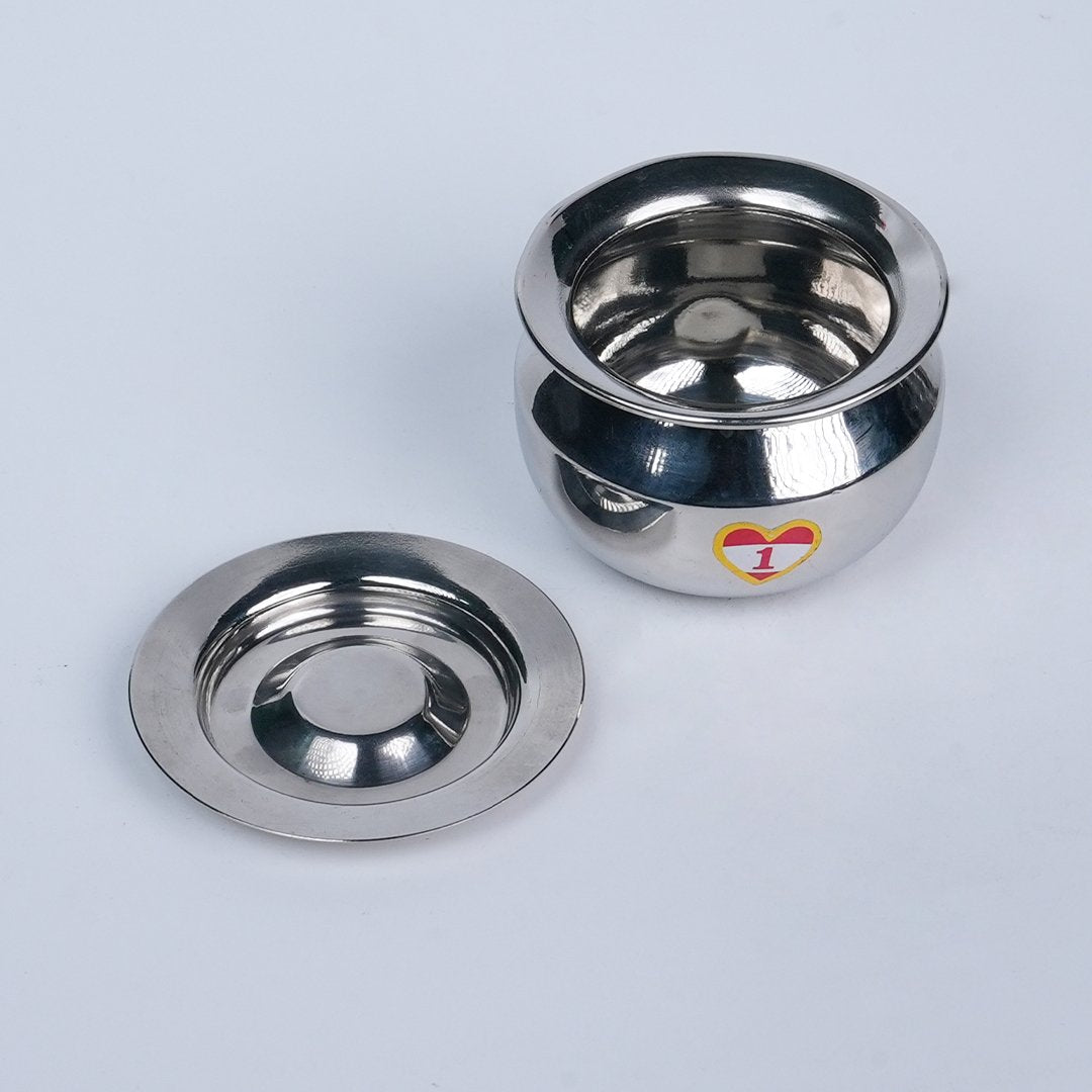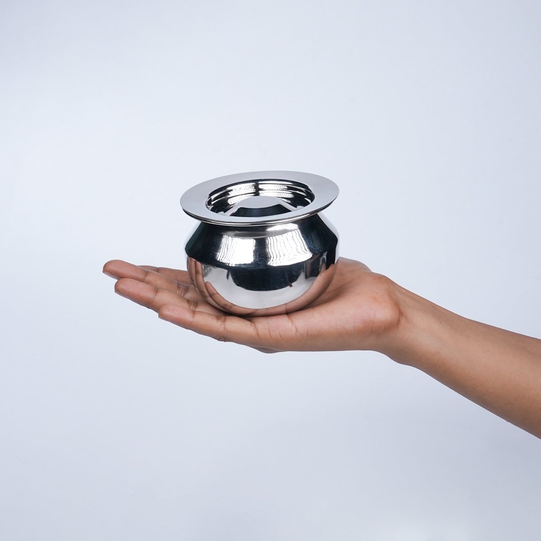 The Handi is a miniature stainless steel handi designed for toy kitchens. Its compact size and durable material make it perfect for young chefs to use while cooking up their imagination. Crafted with high-quality stainless steel, the Handi is a safe and realistic addition to any toy kitchen set."