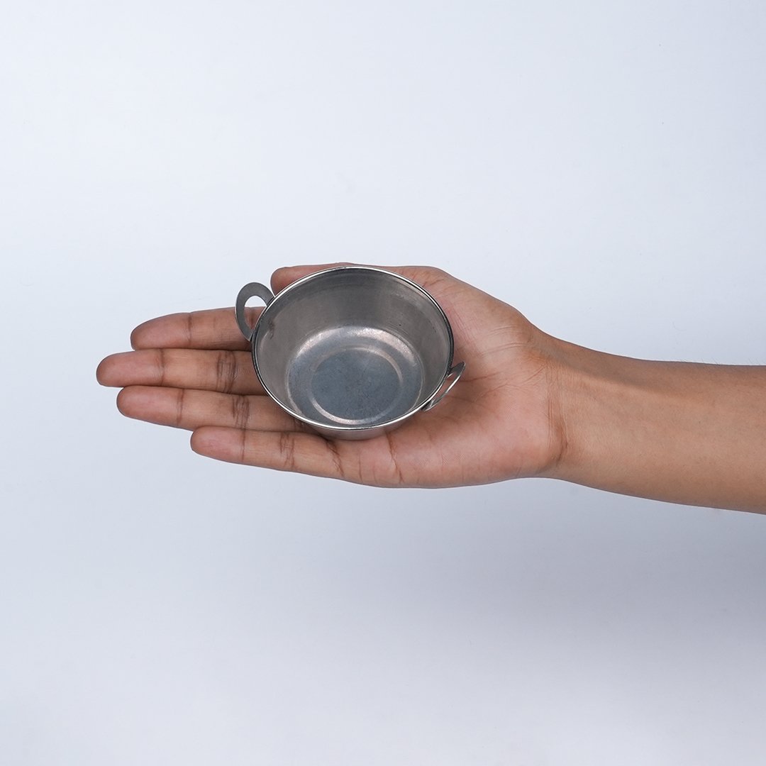This miniature stainless steel kadai is perfect for young chefs in toy kitchens. Its durable stainless steel construction looks like real cookware, providing a realistic cooking experience.