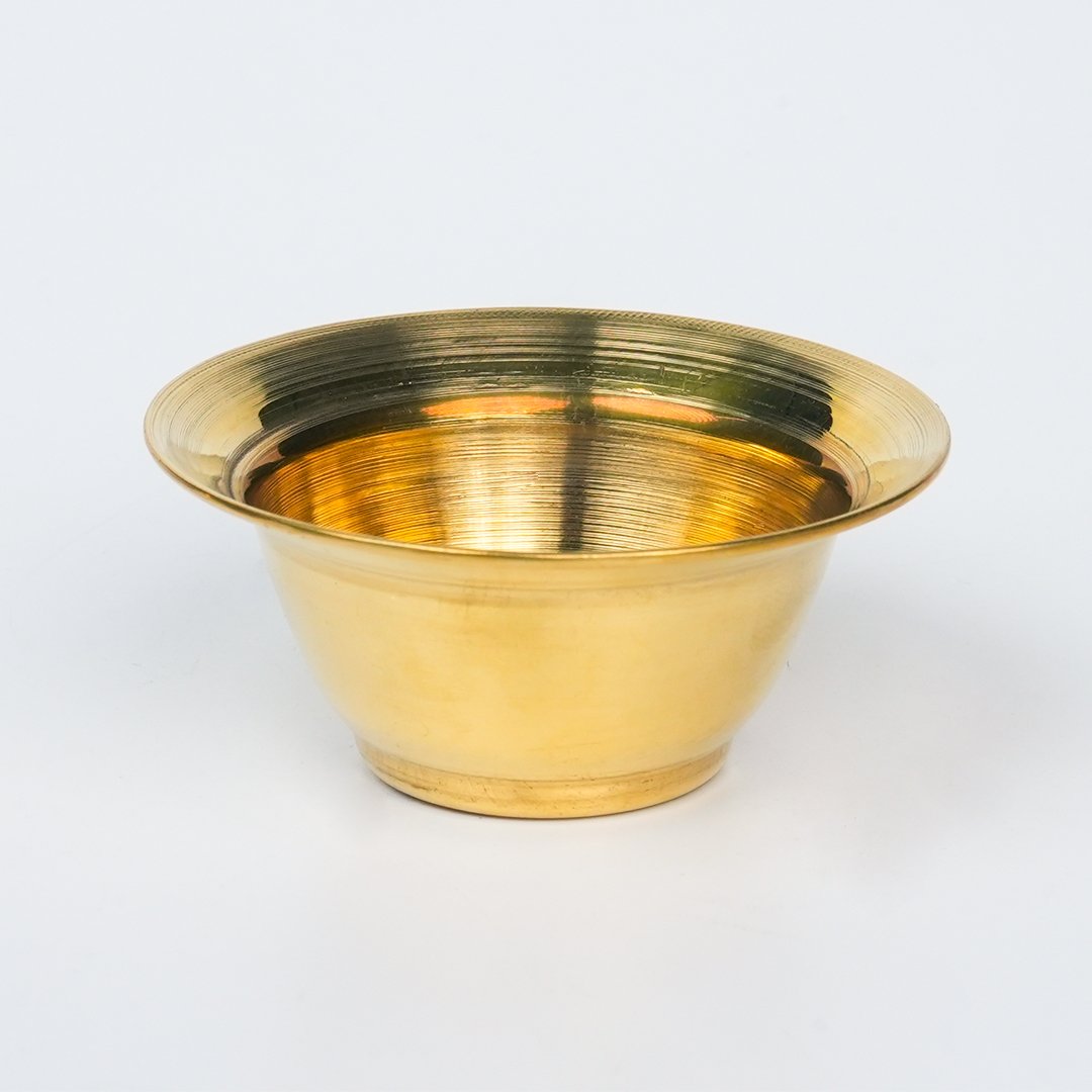 This Katori is made of polished brass, perfect for play kitchen tasks. Its lustrous finish and intricate design make it look like the real thing. The size is perfect for small hands, making it the perfect toy kitchen accessory.