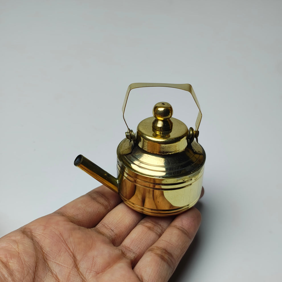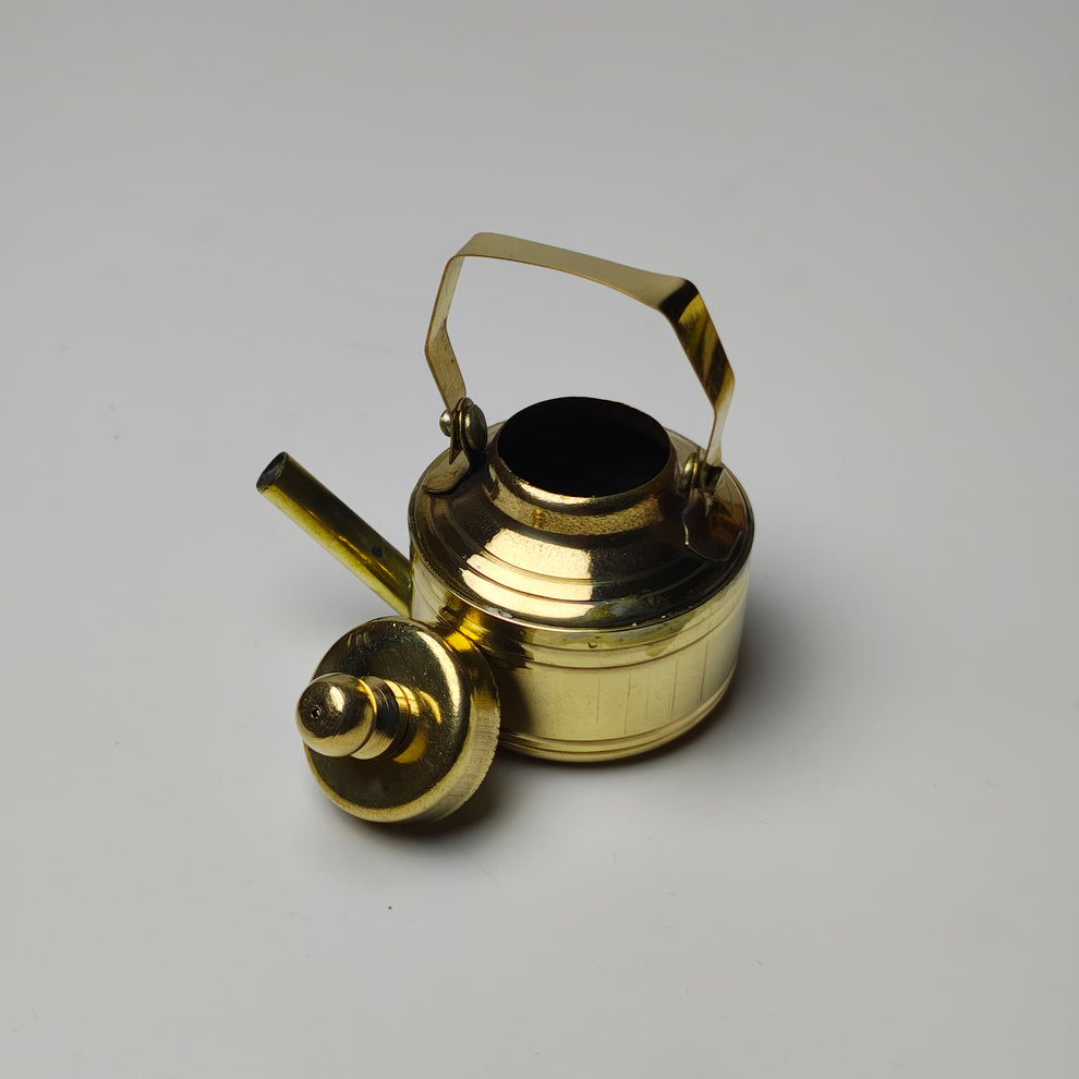 This Miniature Brass Kettle is perfect for adding a touch of elegance to any room. Its small size makes it a charming decorative piece while its brass material adds a sense of sophistication. A must-have for any collector, this miniature decor will enhance any space with its timeless beauty.