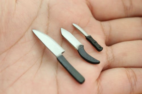 Introducing our miniature knife set, perfect for doll house kitchens. This set includes 3 pieces, each carefully crafted for precision and durability. Add a touch of realism to your play kitchen with our expertly designed set.