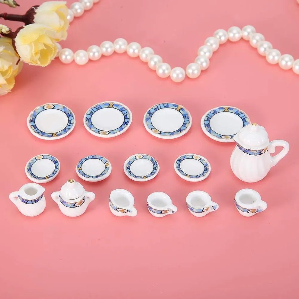 This 15 piece miniature tea set is perfect for kids' dollhouses. It includes everything needed for a charming tea party, promoting imaginative play and storytelling skills. The set is ideal for fostering social skills and creativity in young children.